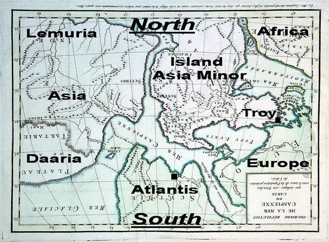 |  Map of the Caspian region before the Flood (top modern South, in the past North)