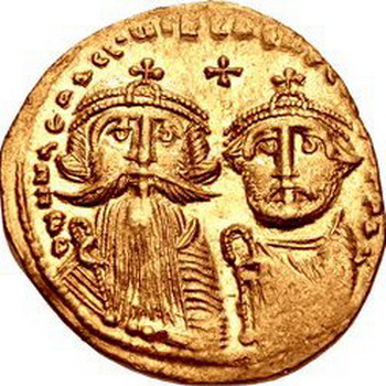 Flavius Heraclius Augustus is a Byzantine Emperor, the founder of a dynasty that ruled for more than 100 years. His years of life are 575–641, years of government 610–641. It is believed that the reign of Heracles, shamefacedly called Iracliy by Russian historians, opened a new era in the history of New Rome, as "the boundary between the old and the newly born historical movement", p. 3 [21]. The young Emperor came to the throne of Rome by overthrowing the Tyrant Phocas in 610. It is believed that Heraclius was a close friend of Kubrat, with whom he studied together. This position is surprising, because according to the traditional chronology, Heraclius must be 20 years older than Kubrat. It is believed that childhood friendship led to the conclusion of a peace Treaty between the great Kubrat Bulgaria and New Rome under the leadership of the Emperor Heraclius.