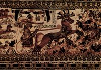 | Начало вторжения гиксосов соответствует по официальной версии истории якобы1650 году до нашей эры [556-568]. Считают, что гиксосы это «цари-пастухи». На самом деле они поволжские кочевники из первого Рима, причем это смесь разнообразных народов – от тюрков и монголов до славян. Напали они на Египет при императоре Августе в конце I века до нашей эры. Правление гиксосов длилось более 200 лет, вплоть до 235 года. Римляне привнесли в Египет новое оружие и доспехи [569], божества [570] и новые слова тюркского и семитского происхождения [571]. Фактически большая часть имен фараонов – гиксосов соответствуют именам местных наместников, назначаемых Римом. Одним из них был Септимий Север (Severus) из династии Северов, он родился в Африке в Лептисе (правление в Риме 193-211), говорят, что построил мавзолей Ганнибала, и стал римским императором из среды солдат. Септимий умер в 211 году. После него пришел к власти Каракалла (211-217), вскоре убив своего брата Гета (211-212). Солдату Каракалле Рим обязан одним из величайших гражданских подвигов — предоставлением всем провинциалам права римского гражданства. То, что это была не просто фискальная мера, видно из льгот, дарованных египтянам. Со времени завоевания Августом Египта, эта страна находилась на особом бесправном положении. Септимий Север возвратил фараонам самоуправление, а Каракалла не только предоставил им право занимать государственные должности в Риме, но и впервые ввёл египтянина в сенат. После Каракалле пришел к власти в Риме император с семитским именем Гелиогабал (218-222) из касты жрецов, но он вскоре был заменен двоюродным братом Александром Севером (222-235). Якобы последний погиб от рук солдат вблизи Майнца в 235 году. В это время в Египте пришел к власти римский наместник и вроде бы фараон Антеф. Иниотеф VII (Антеф VII) Нубхеперра правил якобы в 1581-1578 годах до нашей эры, а на самом деле в 210-212 годах нашей эры. После него руководителем египетской провинции и сенатором Рима стал его сын - Таа I. Таа I правил якобы в 1578-1573 до н.э., фактически в 212-217. У него и жены Тетишери родился сын Таа II Секененра (Храбрый). Таа II Секененра (Храбрый) правил якобы в 1573-1558 годах до нашей эры, а на самом деле - в 217-232 годах нашей эры. Впредь мы будем указывать официальные годы правления фараонов в фигурных скобках, например{1573-1558 до н.э.}, а в круглых скобках – истинные годы нашей эры (217-232). Таа II Храбрый поднял восстание против римских оккупантов в 232 году, эта дата совпадает с официальной датировкой начала волнений в Африканской провинции римской империи против династии Северов, которых в египетских источниках называют Аусерра Апопи (по-гречески Апофис) {1585-1545}или Северов (193-235), последних гиксосов в Египте. Следовательно, гиксос Апопи тождественен не одному правителю, а целой династии. При анализе римских источников Таа II Храбрый соответствует проконсулу Гордиану I в Египте, который и поднял восстание с целью отделения Египта от римской империи. Известно, что после многочисленных кровопролитных столкновений в Египте власть осталась у внука Гордиана. Получается, что после Таа II Храброго правил его сын Камос. Камос (Камес) правление в {1555-1552}, фактически (235-238) годы, по римским источникам Гордиан II. Он активно проводил военные действия против римлян - гиксосов и погиб в бою. После него к власти пришел Яхмос I еще юношей. Яхмос I правление в {1552-1527}, фактически (